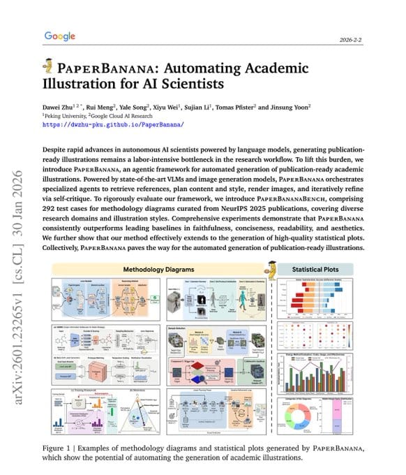 PaperBanana is basically what happens when Google decides researchers shouldn’t have to suffer through diagram design anymore. It’s a research tool from Google that generates publication-ready academic illustrations from written methodology. A team of coordinated AI agents finds reference diagrams, plans structure, styles layouts, generates images, and critiques the result.